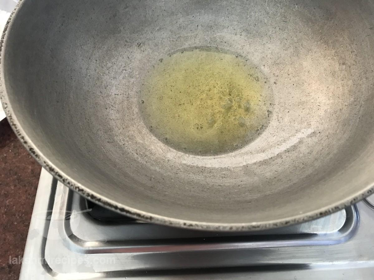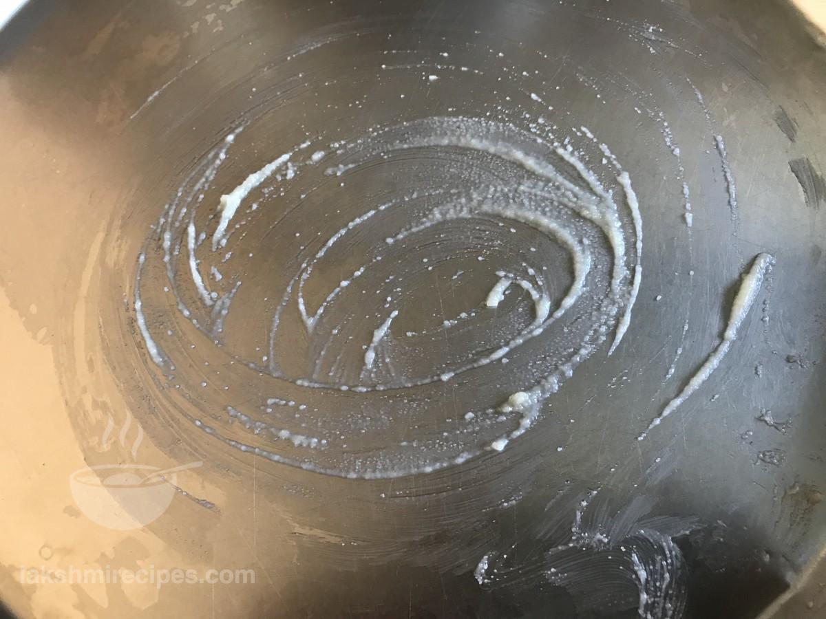 - एक मोटे तले की कढ़ाई में 2 बड़ा चम्मच घी डालकर गरम करें।