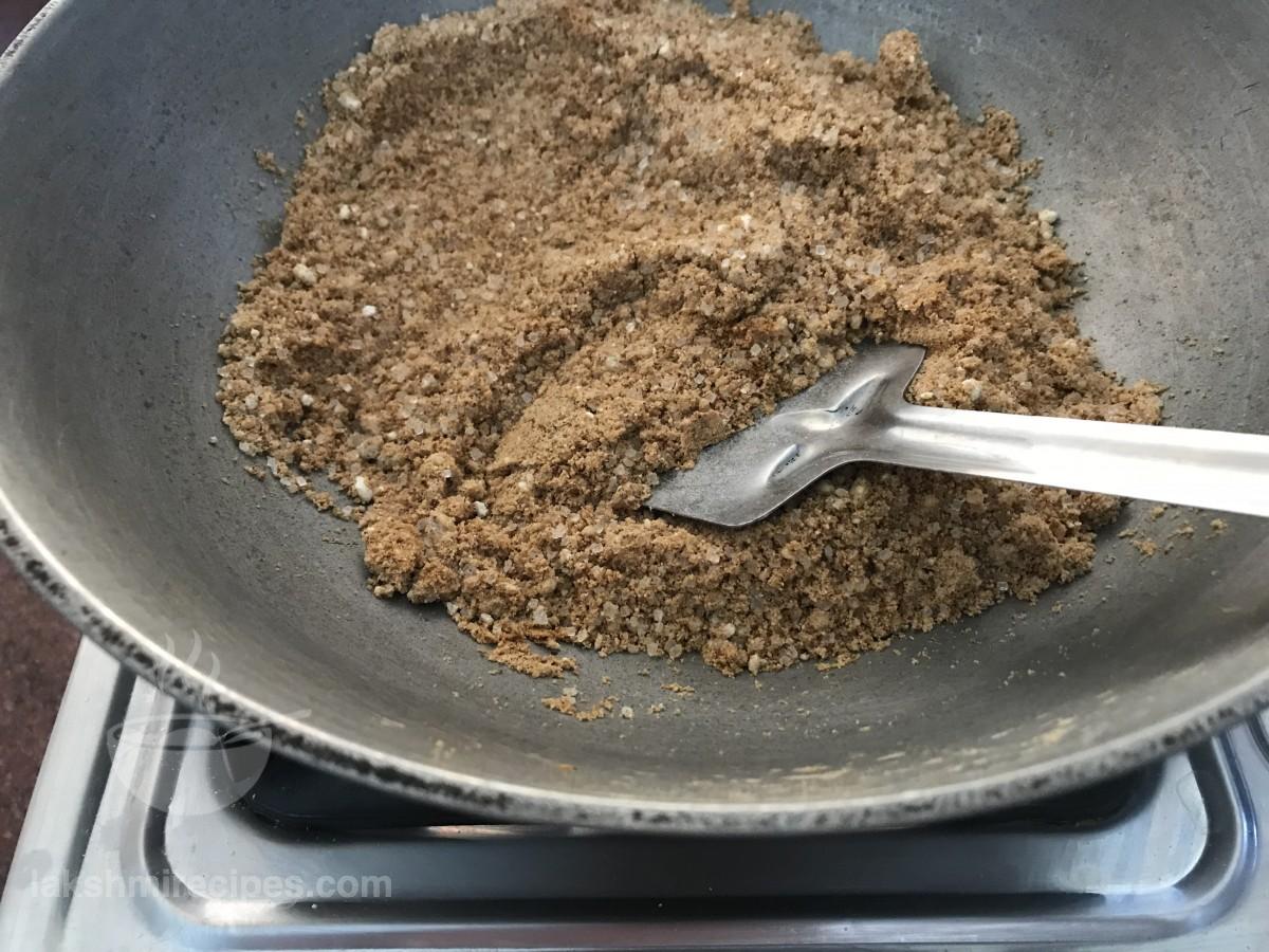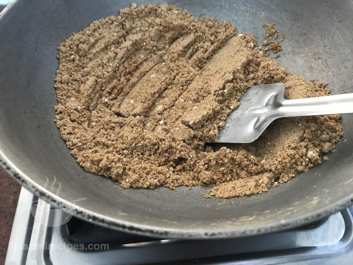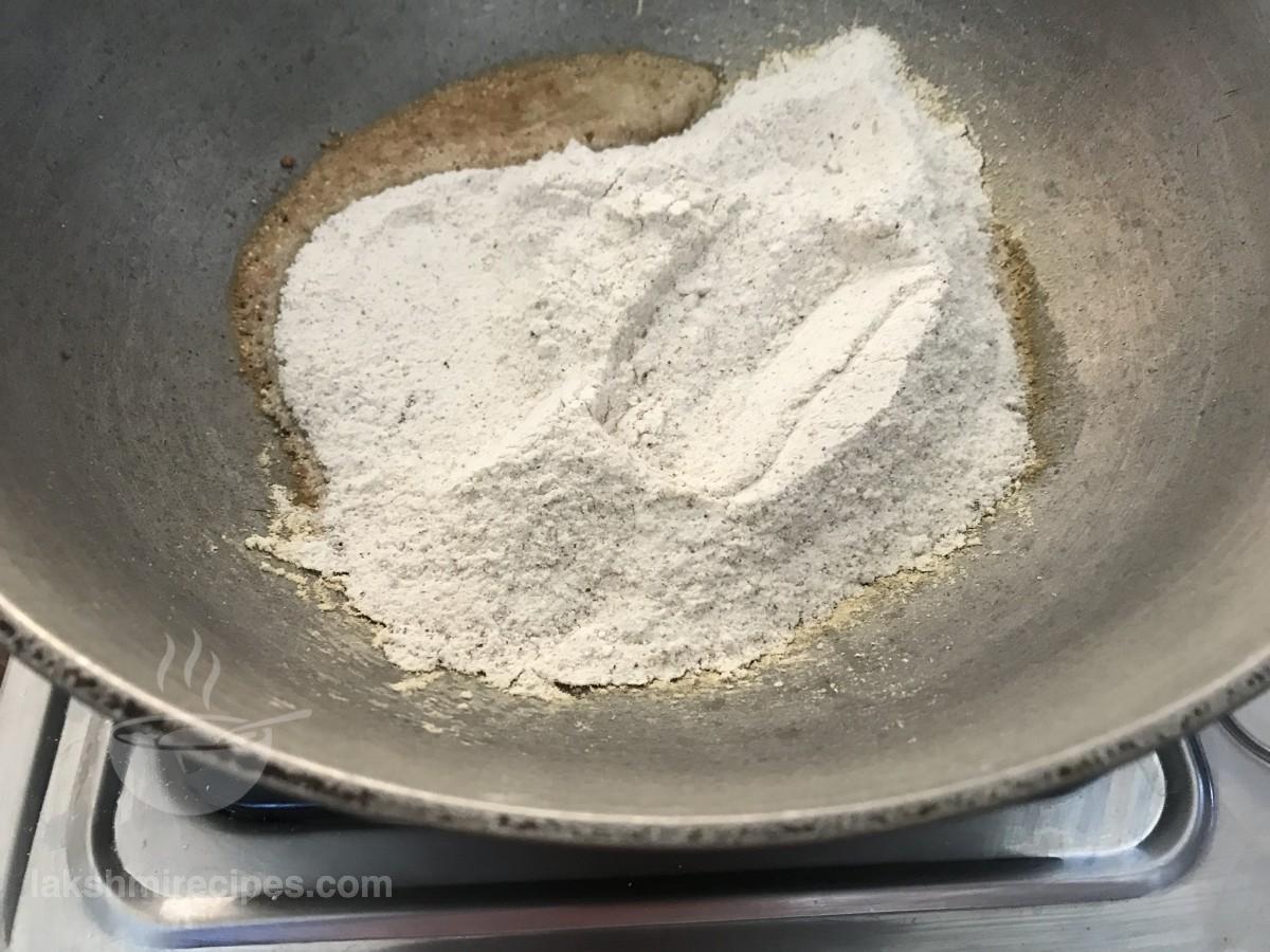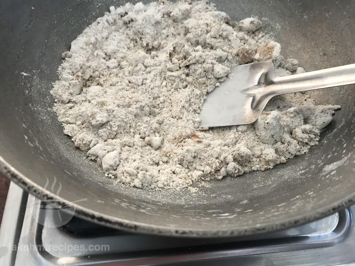 - सिंघारे के आटा को लगातार चलाते रहें और कम आंच पर तब तक भूनें जब तक कि यह लाल न हो जाए।