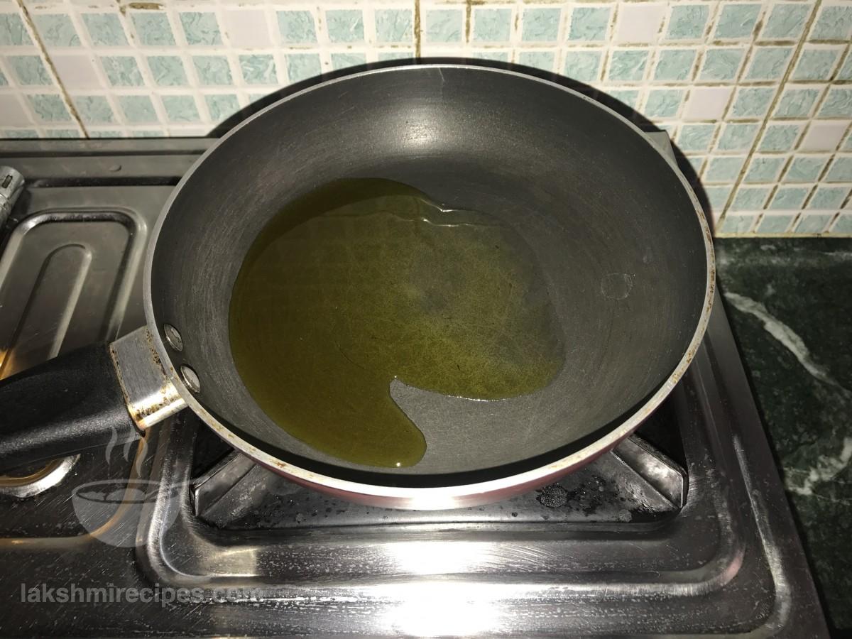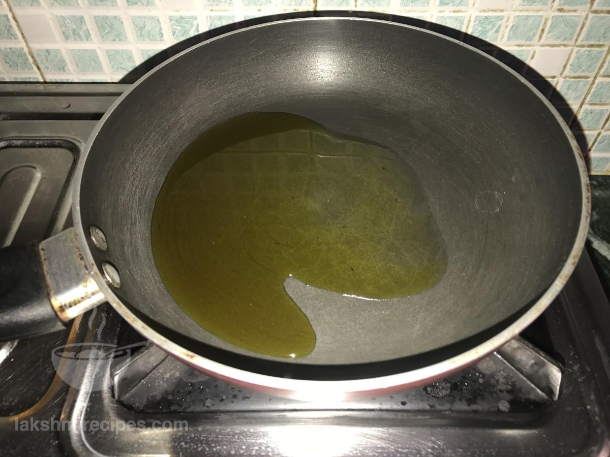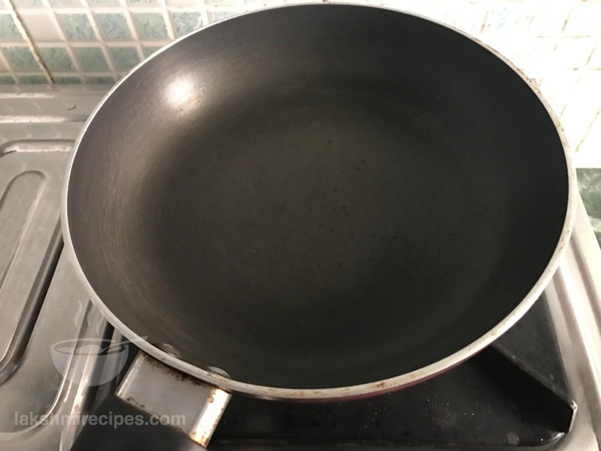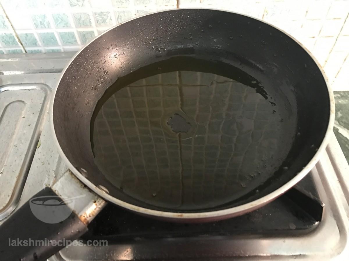 - Now heat a non-stick pan and add 2 table spoon mustard oil to it.