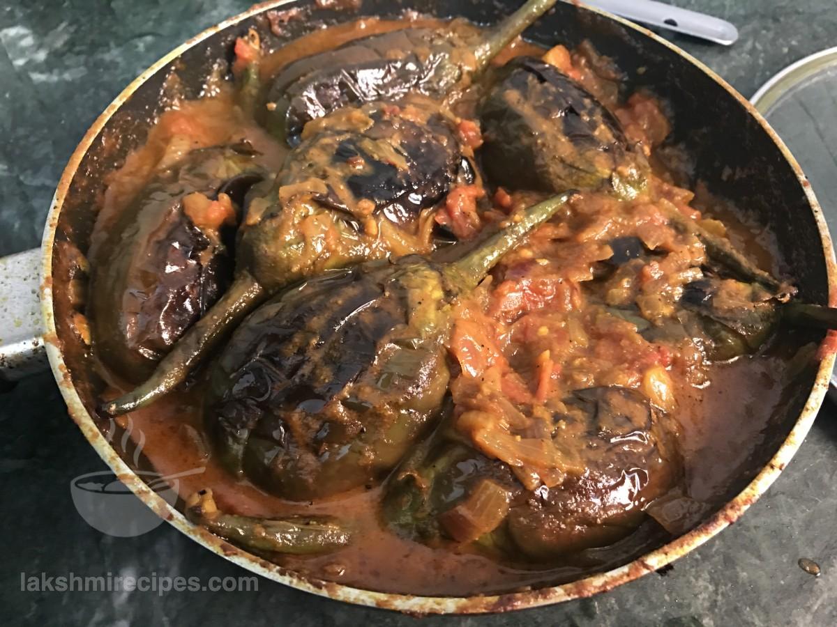 Cooking Time: 35 minutes (10 minutes to cook the brinjals in oil + 5 minutes to prepare the base masala for gravy + 10 minutes for boiling the gravy masala mixture + 10 minutes for cooking the brinjals in gravy masala mixture at low flame)