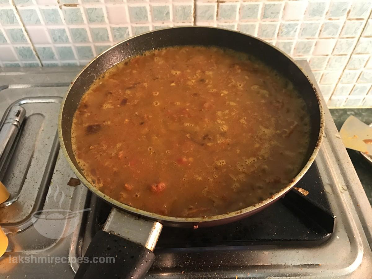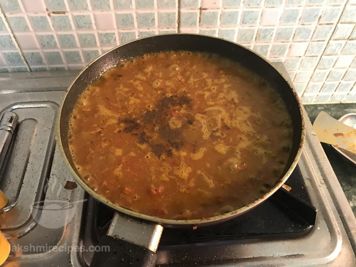 - फिर नॉन-स्टिक पैन में 1 बड़ा कप पानी डालें और सारी सामग्री को एक साथ मिलाएं। अब इस ग्रेवी मसाला मिश्रण में उबाल आने दें।