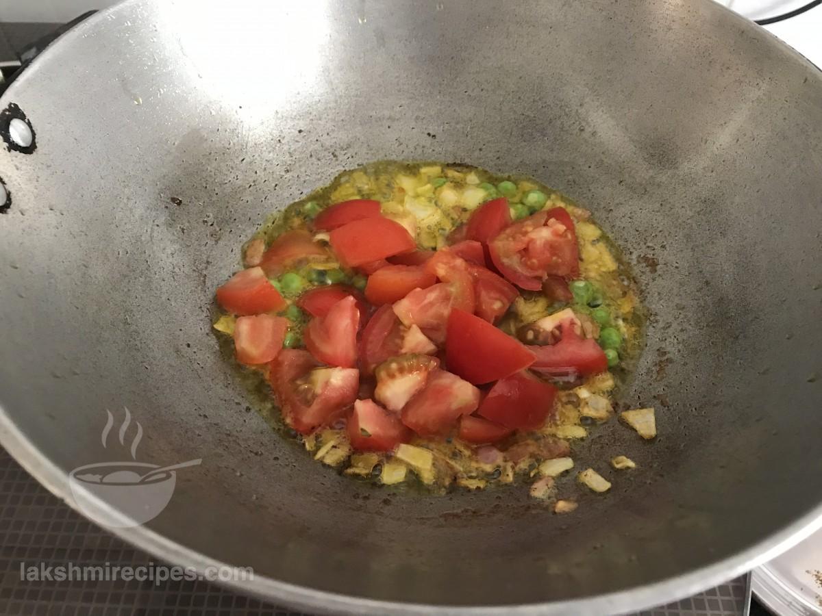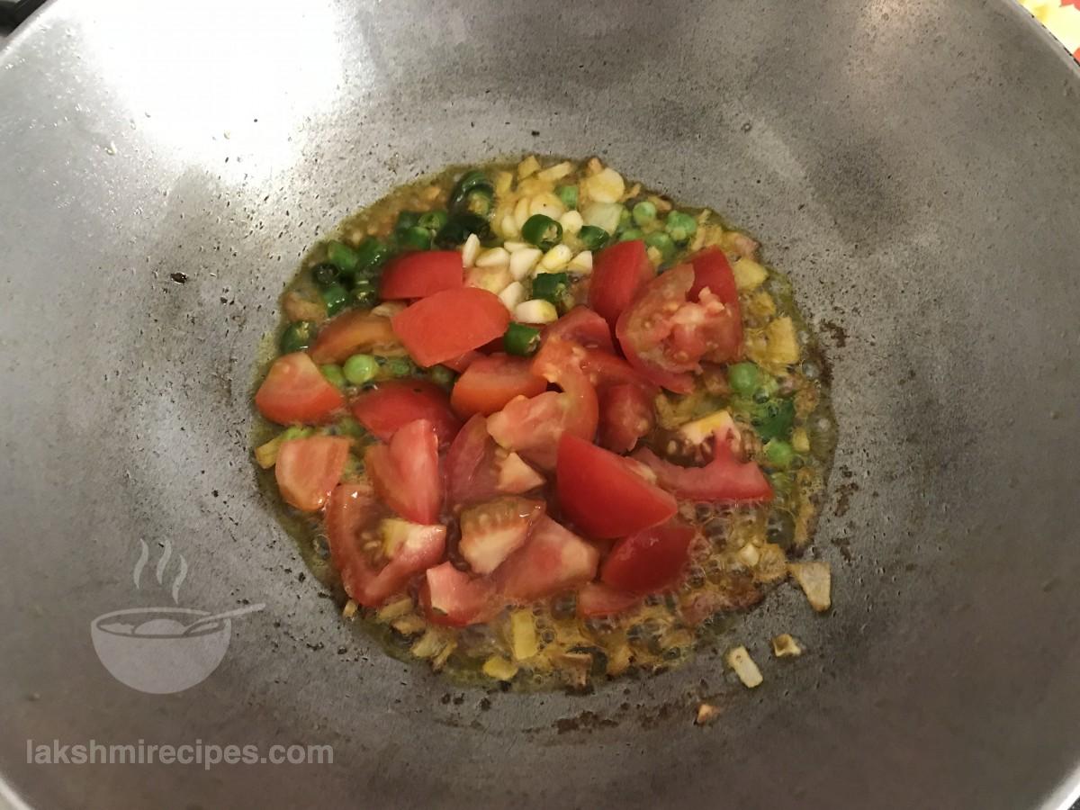 - कुछ समय बाद कटा हुआ टमाटर डालें और उसे नरम होने तक भूनें।