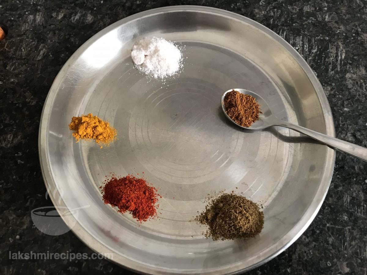 - फिर हल्दी पाउडर, लाल मिर्च पाउडर, जीरा पाउडर और नमक डालें और मिलाएं।