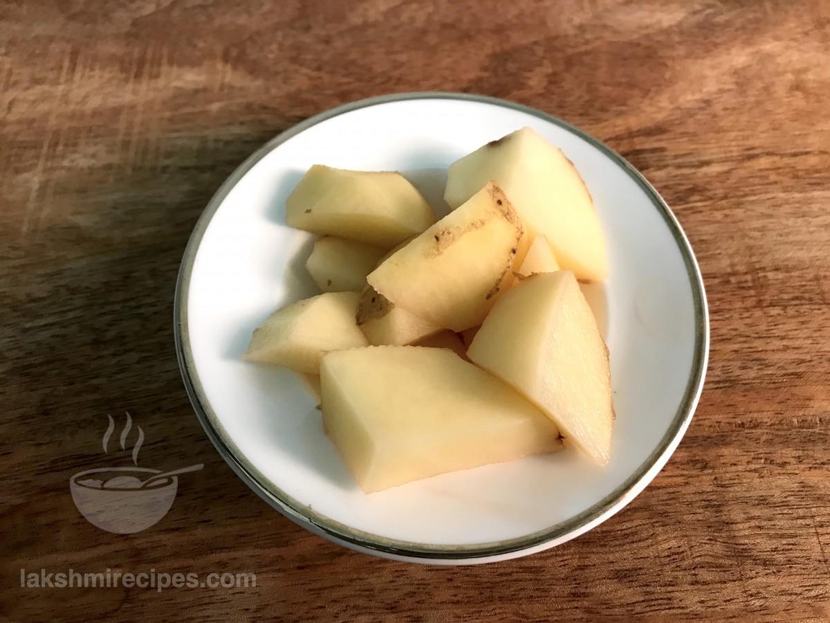 - Potato or aloo or आलू - 1 medium size, chopped into pieces of desired