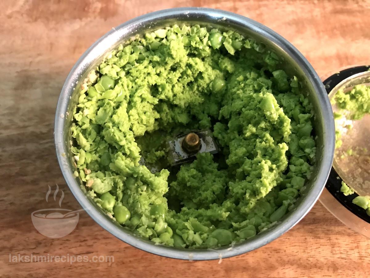 - Transfer the fresh and clean, green peas to a mixer jar and grind them to get a granular form. Leave some green peas as it is without grinding them. Do not add water while grinding the green peas for making Matar Ka Nimona" curry.