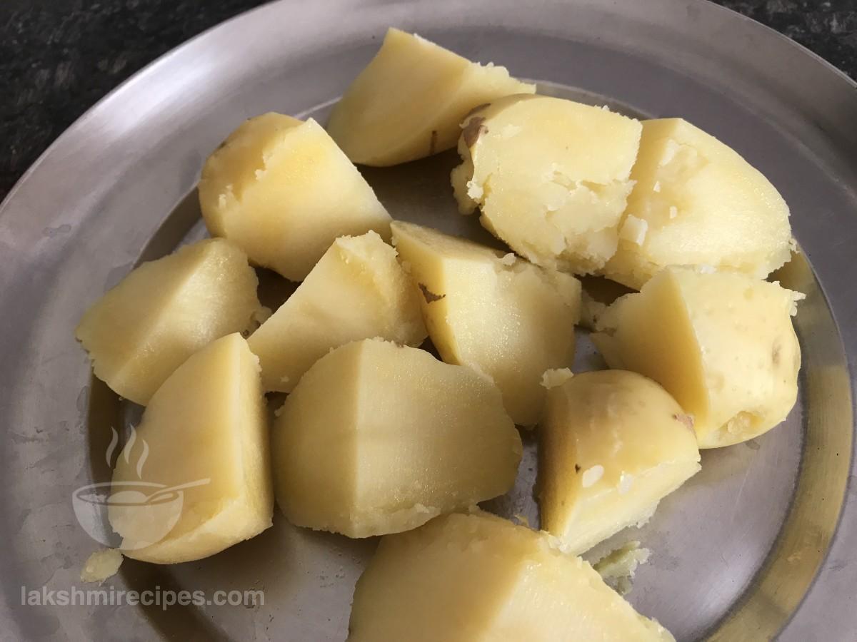 - उबले हुए आलू को बड़े टुकड़ों में काट लें।