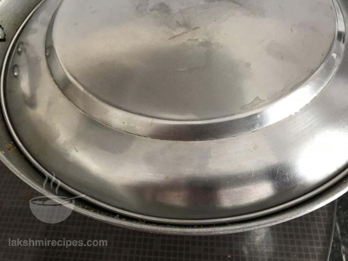 - Cover the kadhai with a lid and cook the aloo dum curry over lower medium flame for 5 minutes.