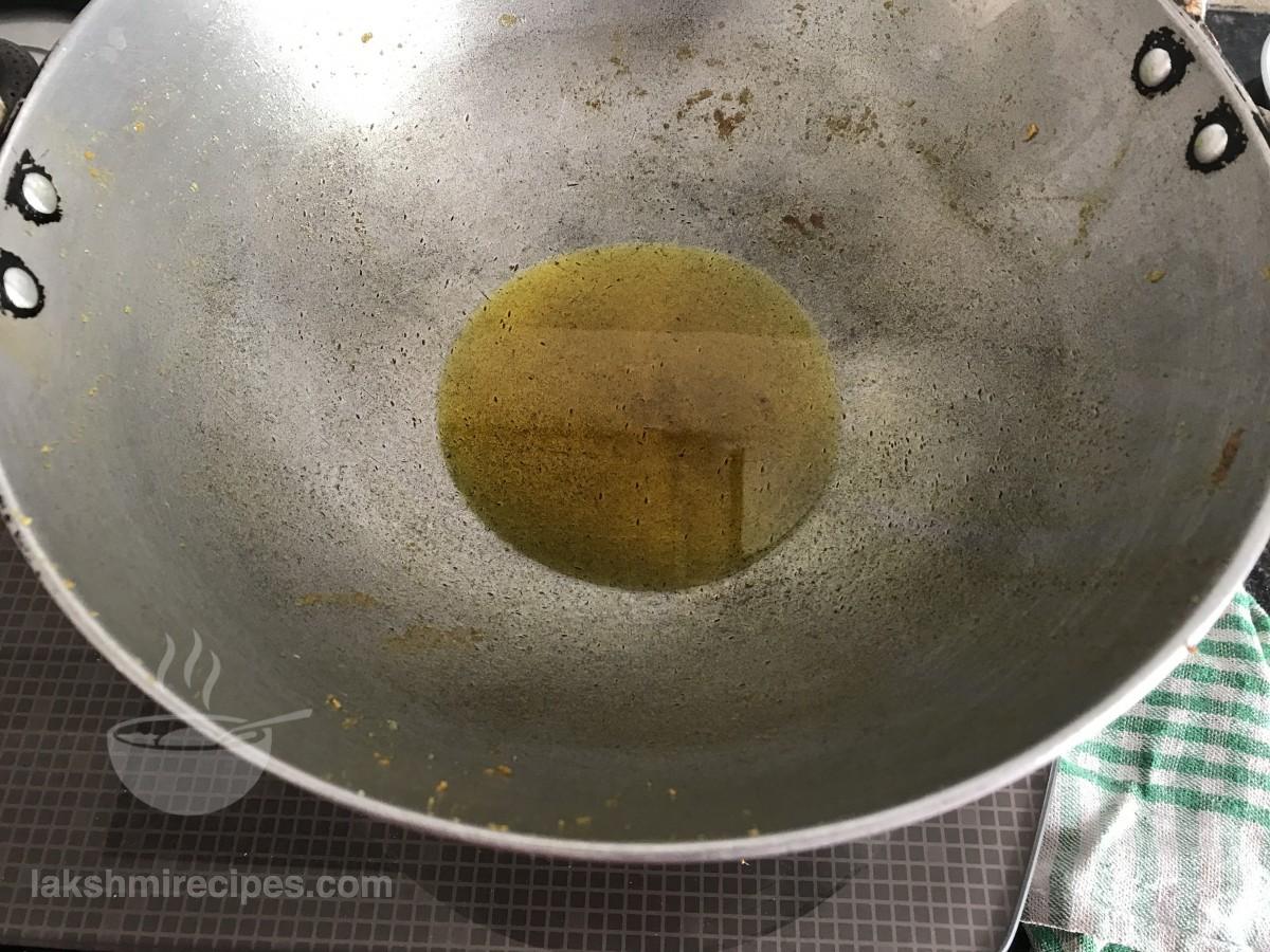 - अब कढ़ाई में थोड़ा और तेल डालकर गरम करें।