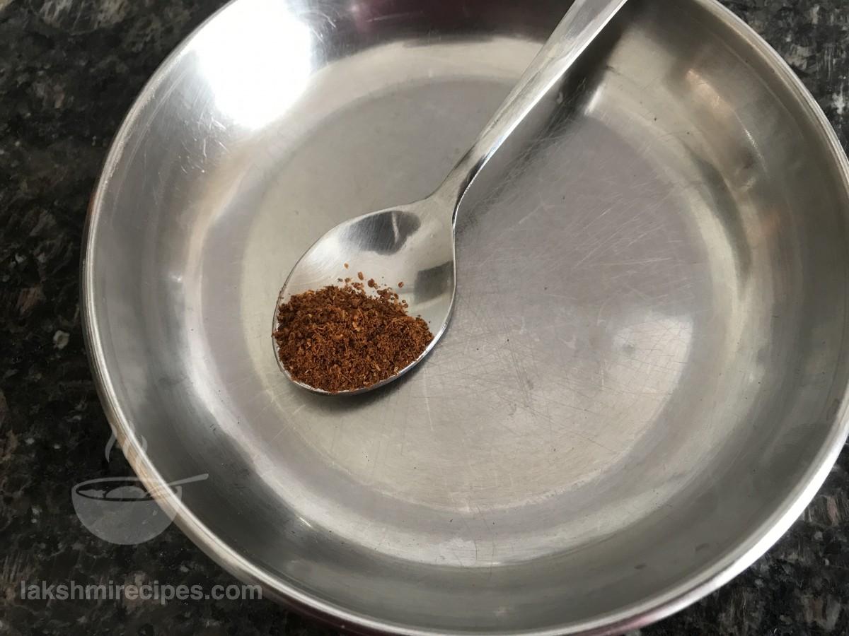- Red Chilli Powder (red chilli powder) - 1 tea spoon; (लाल मिर्च पाउडर)