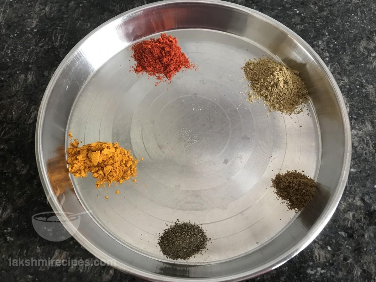 - Coriander Powder (dhaniya powder) - 1 tea spoon; (धनिया पाउडर)