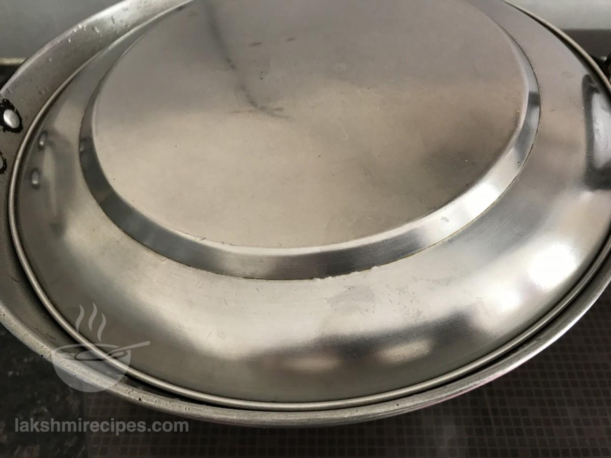 - इस पतीले या कढ़ाई को ढक दें और फिर कच्चे केलों को पानी पकाने के लिए पतीले या कढ़ाई को मध्यम आँच पर रख दें।