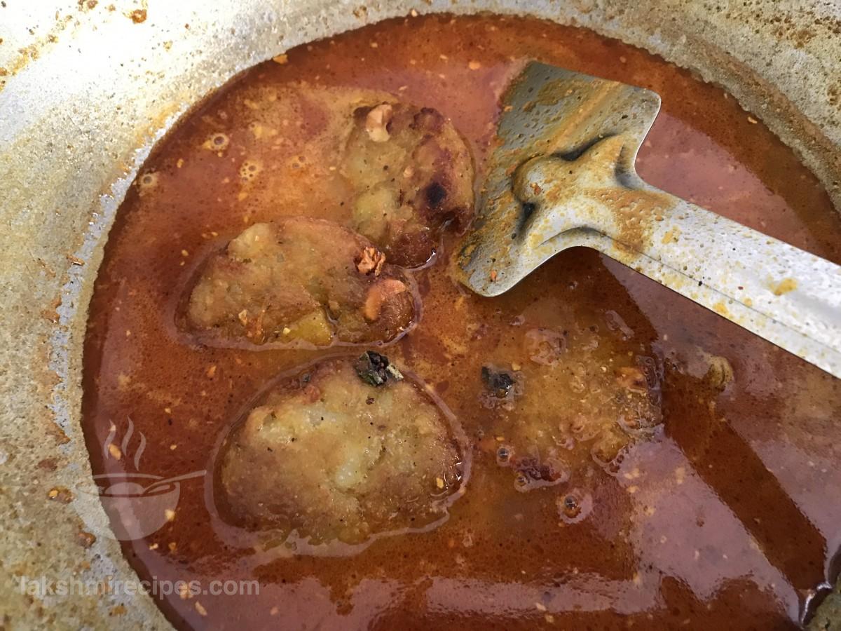 - ग्रेवी को उबाल लें और यदि आवश्यकता हो तो थोड़ा नमक डालें। 2-3 मिनट के बाद गैस बंद करें और कच्चे केले के कटलेट्स या केले के कोफ्तों को ग्रेवी में डालें। फिर तैयार किए गए कोला कोफ्ता करी को एक कटोरे में निकालें और परोसें।