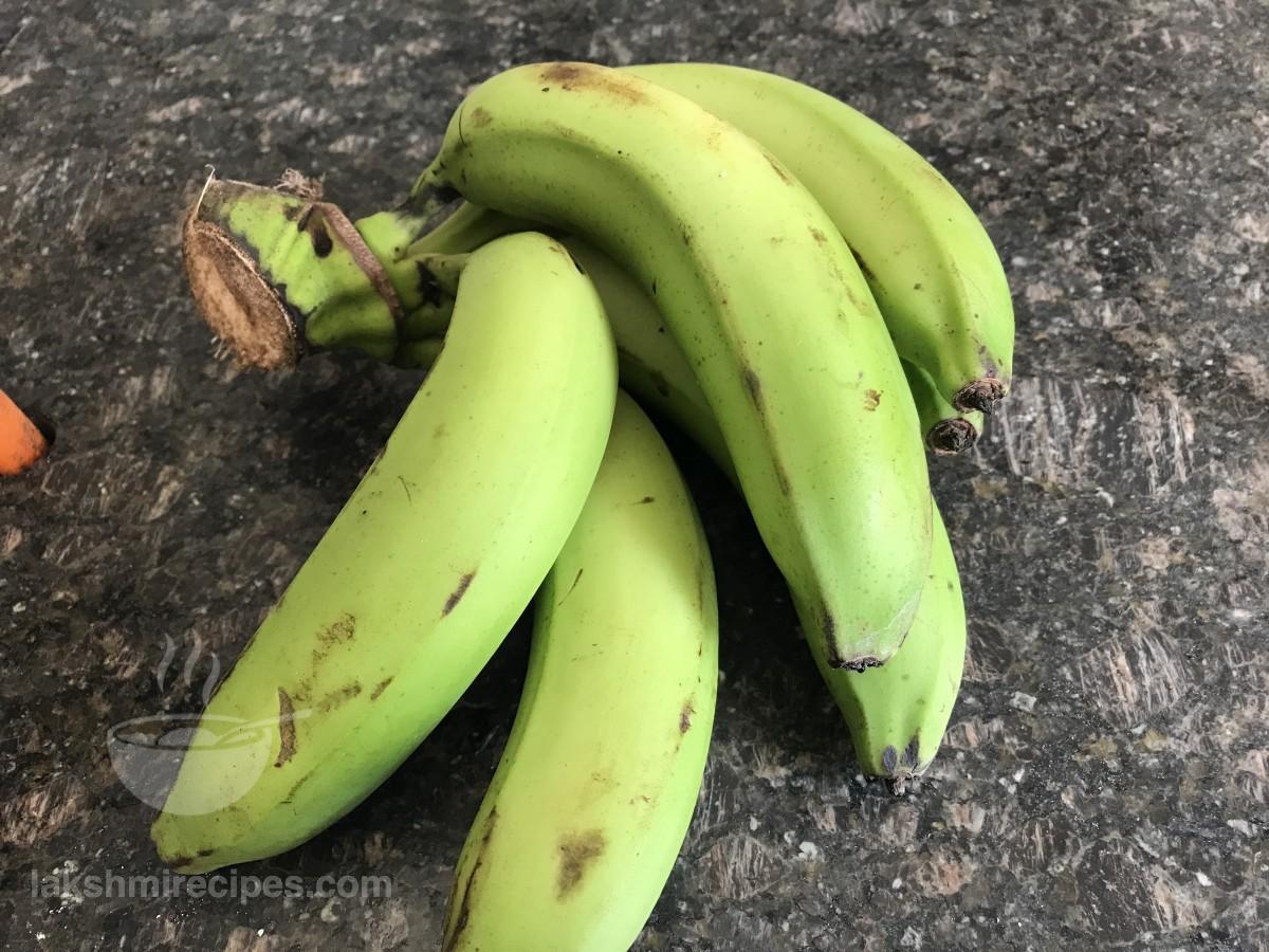 - Wash the raw bananas well with clean water and then transfer them to a vessel filled with water.
