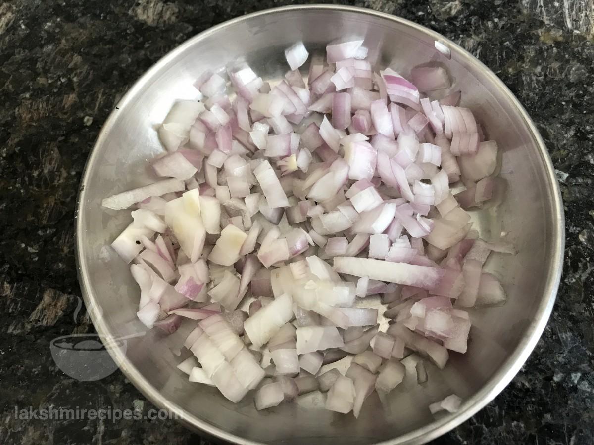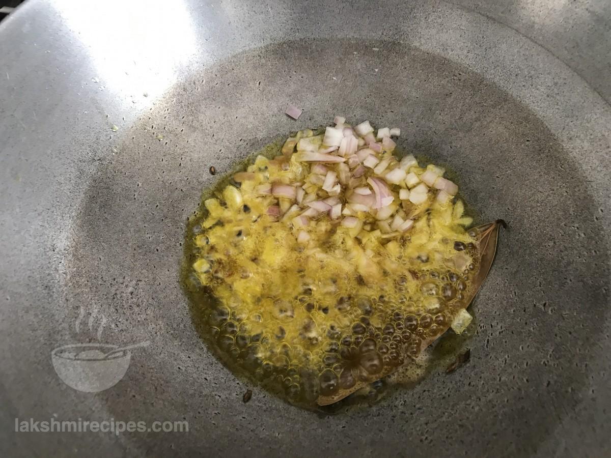 - अब कढ़ाई में कटा हुआ प्याज डालें और सुनहरा लाल रंग का होने तक भूनें।