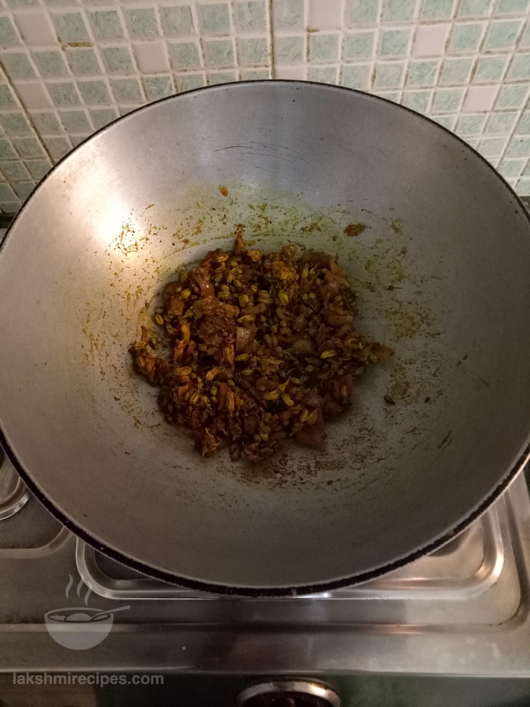 (Tips: Do not add water while cooking the bhujia. The salt and the spices added will help the drumstick flowers to get cooked and become soft and tender to eat)