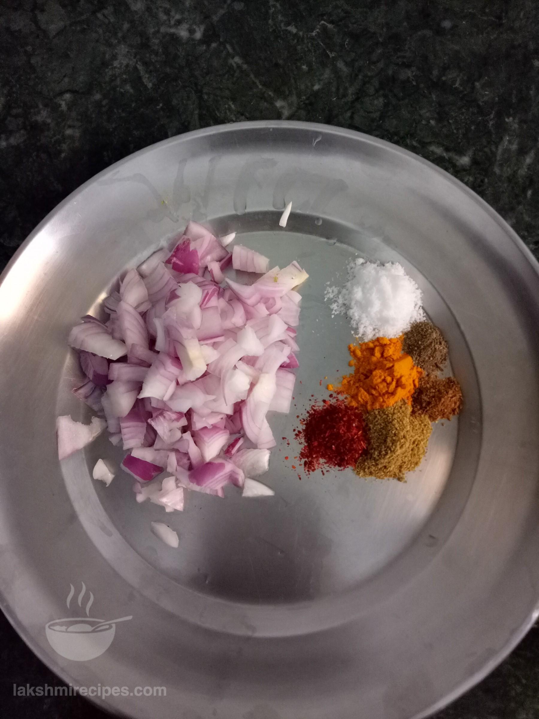 - Onion (pyaz) - 1 medium sized (finely chopped)